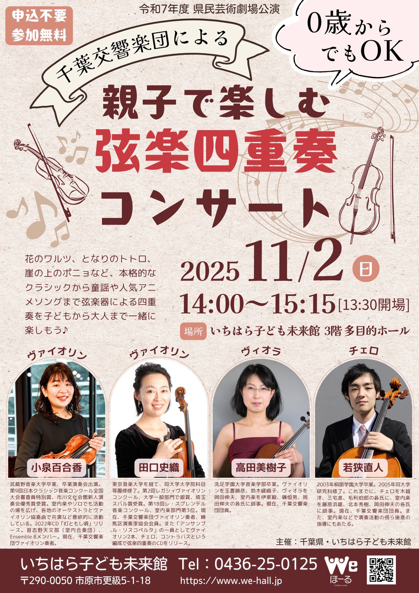 その他の演奏会 令和7年度県民芸術劇場公演 千葉交響楽団による『親子で楽しむ弦楽四重奏コンサート』
